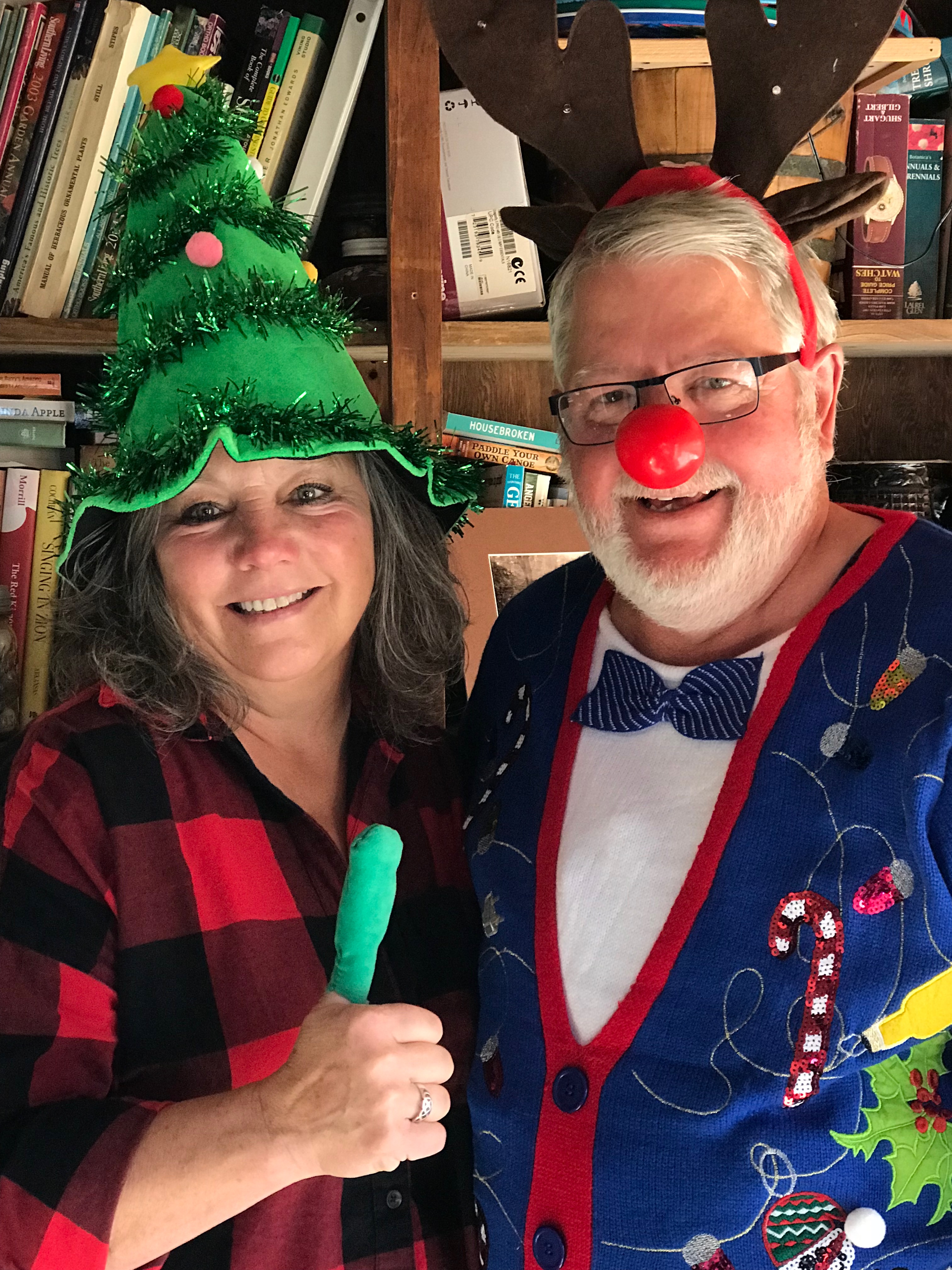 Merry Christmas from Russell the Red-Nose Writer & Connie the Green-Thumb Gardener